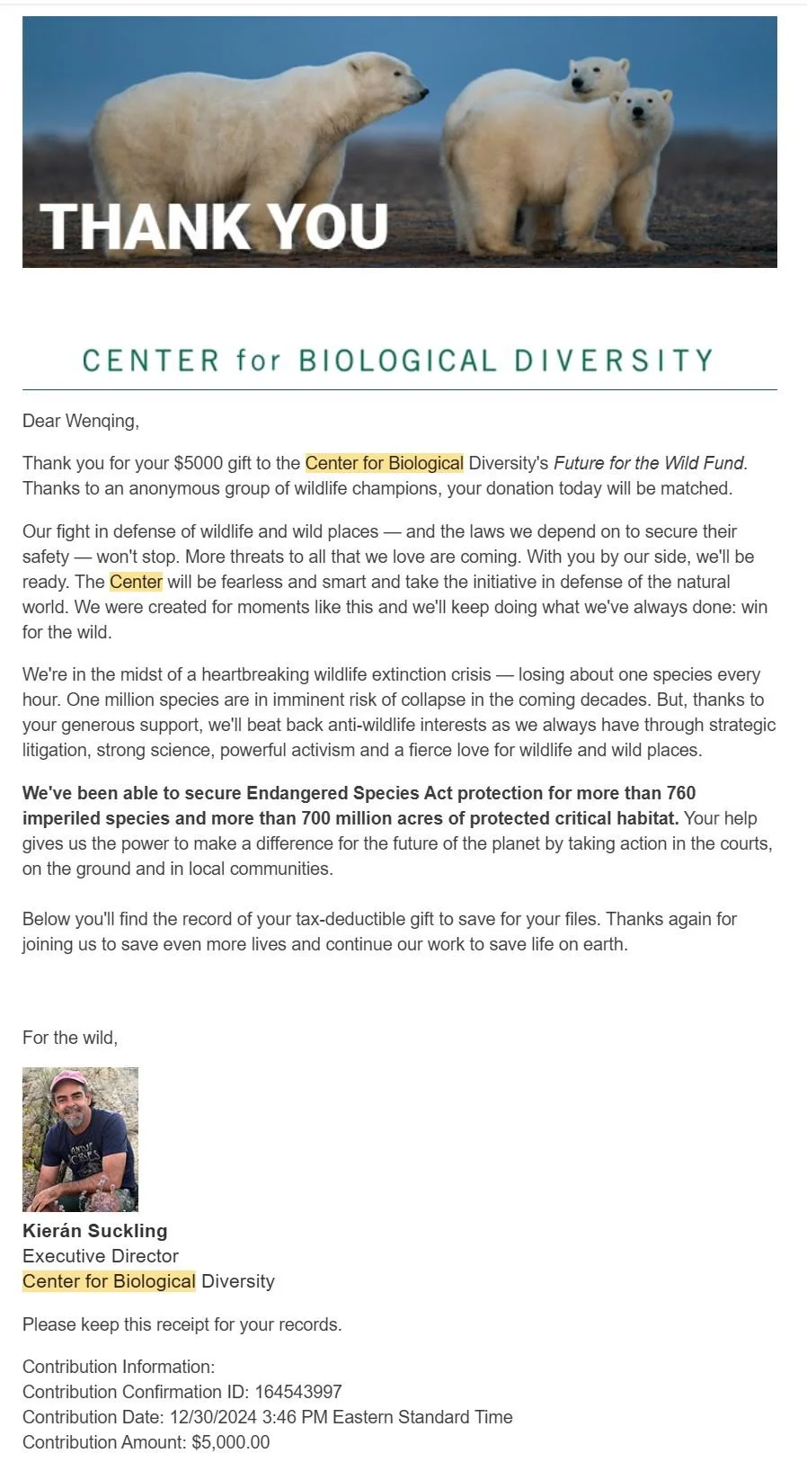 Like prior years, I’ve chosen a series of environmental organizations based on their ratings on Charity Navigator and Charity Watch. It’s been so amazing to see the amount we raise every year since 2016, and I hope we’ll continue to help the planet for many years to come!